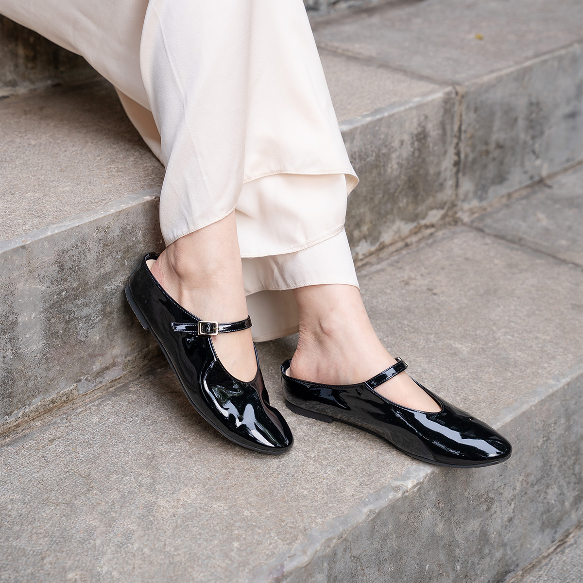 - Kiểu dáng: Giày mules đế bệt Mary Jane